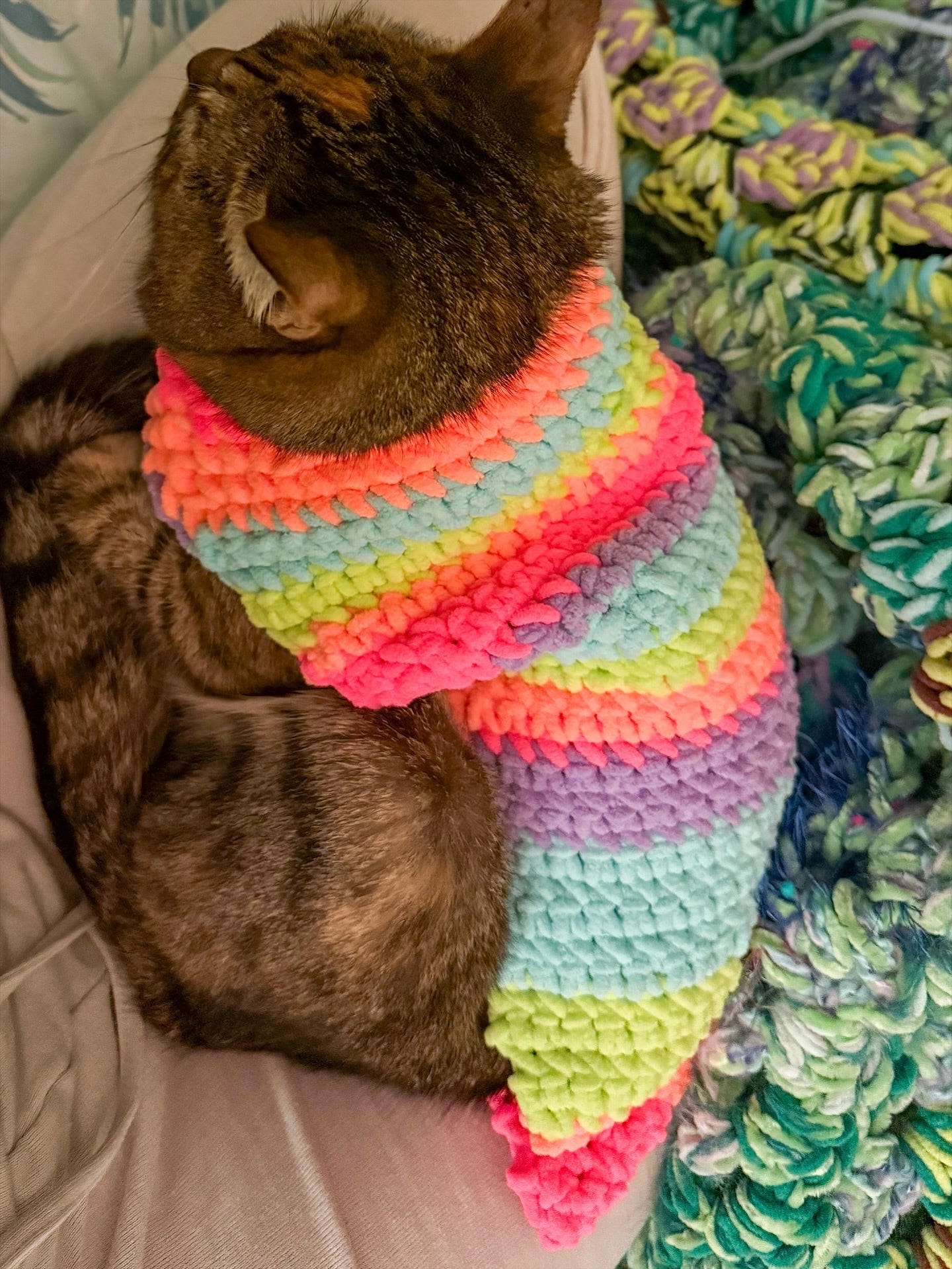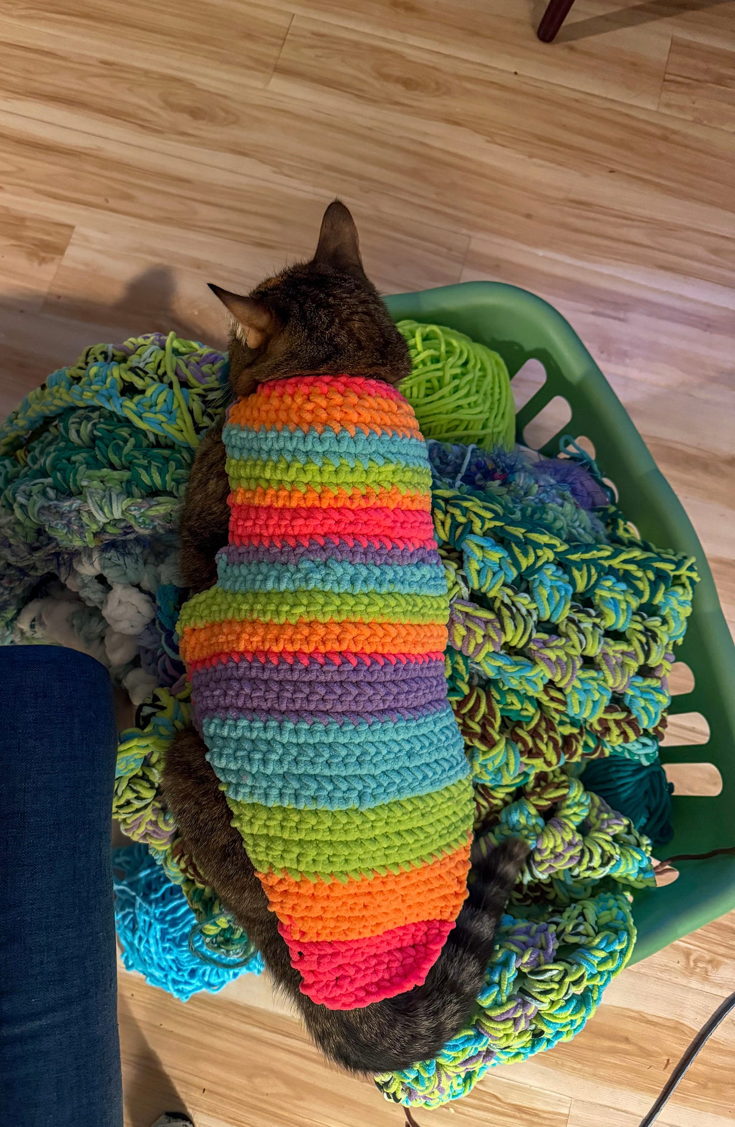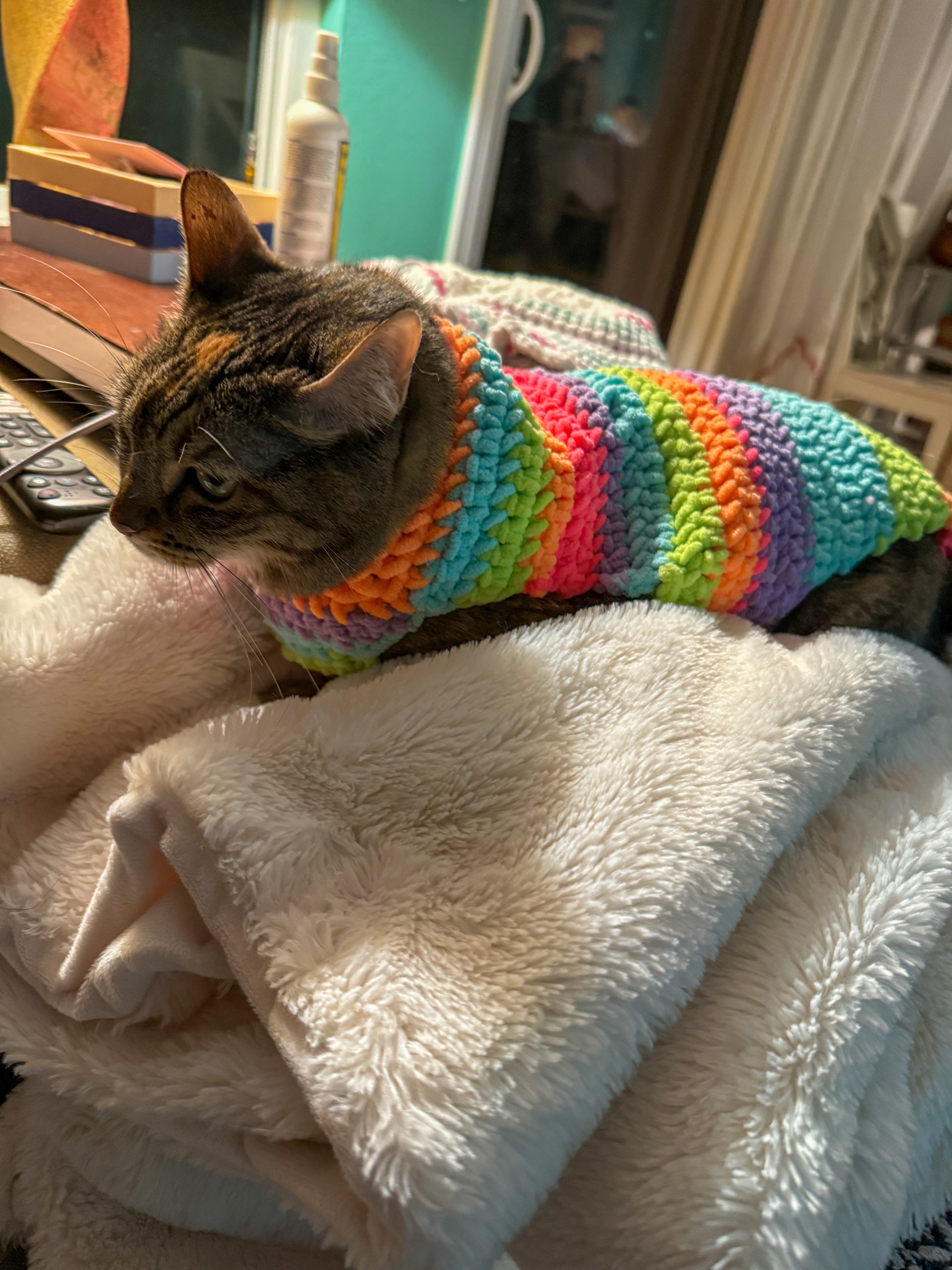 cat sweater sustainaberylDec 08, 20252Sharei made a sweater for my cat and she loves it. hopefully this brightens your inbox in this dark political climate and alleviates your seasonal depression 💚 ilysm (scroll to the end for a special message from olive) meow